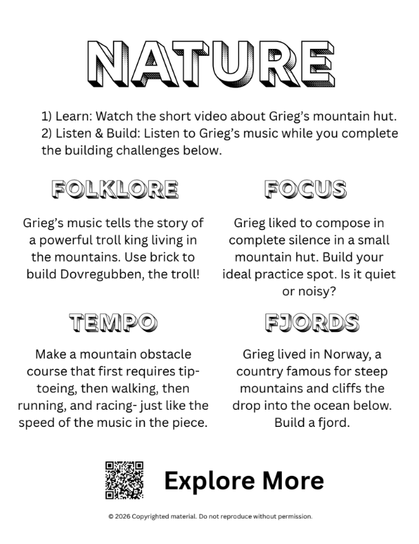 Brick Symphony blends creativity and innovation with guided building challenges, and a custom take-home musical set!